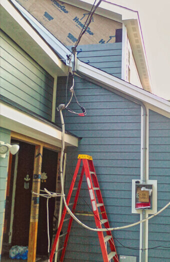 Expert repairs for non-compliant aerial cables, including low-clearance issues, frayed insulation, unsafe attachment points, and missing service hardware.